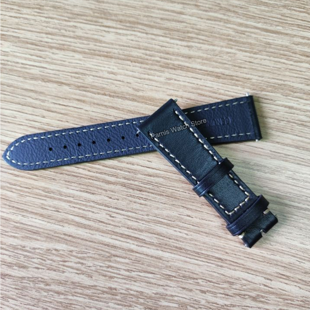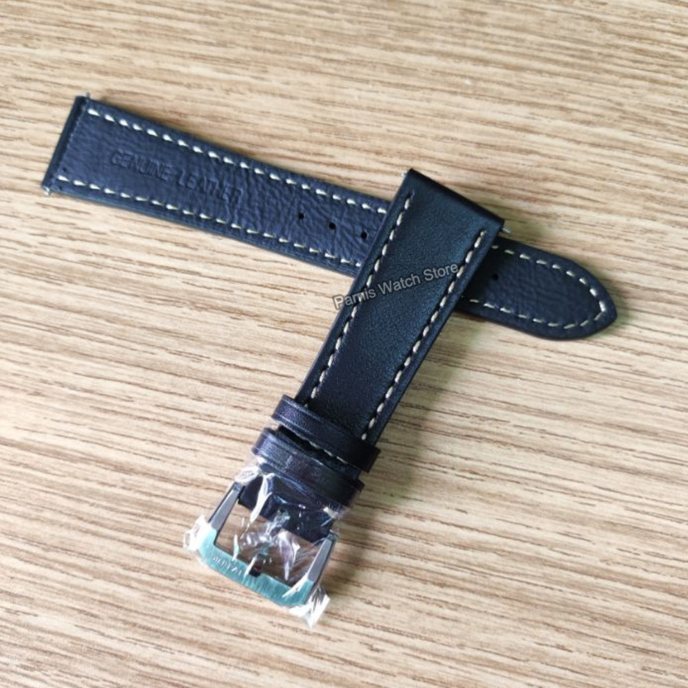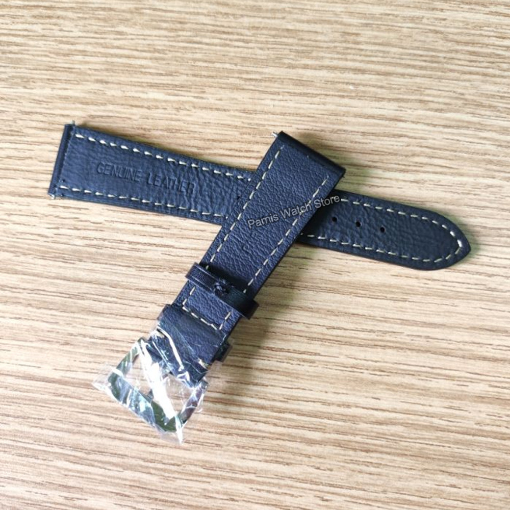 22mm Width Black Leather Watch Strap Men's Original Wristwatch Leather Band