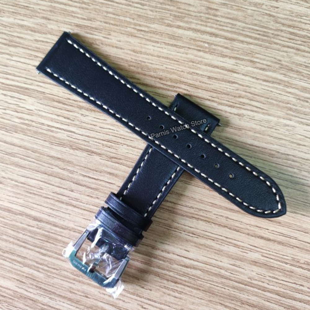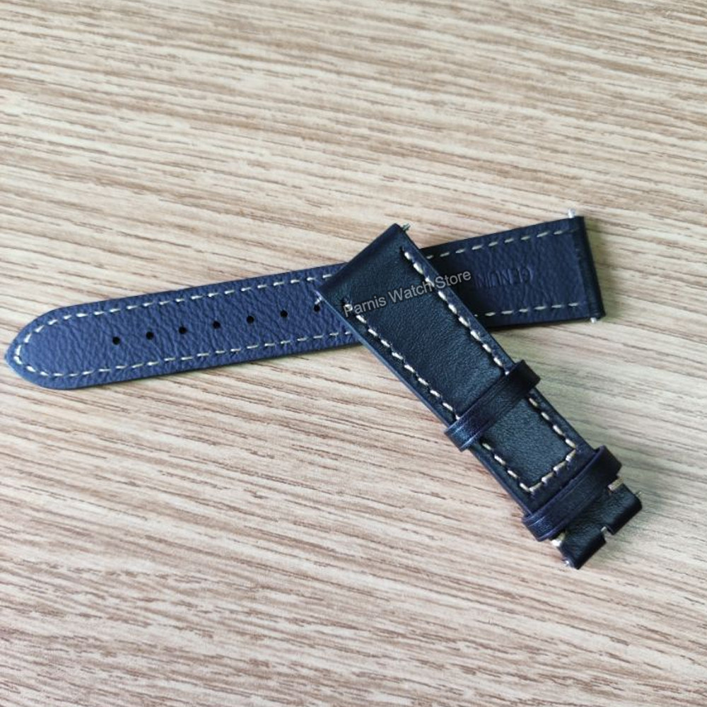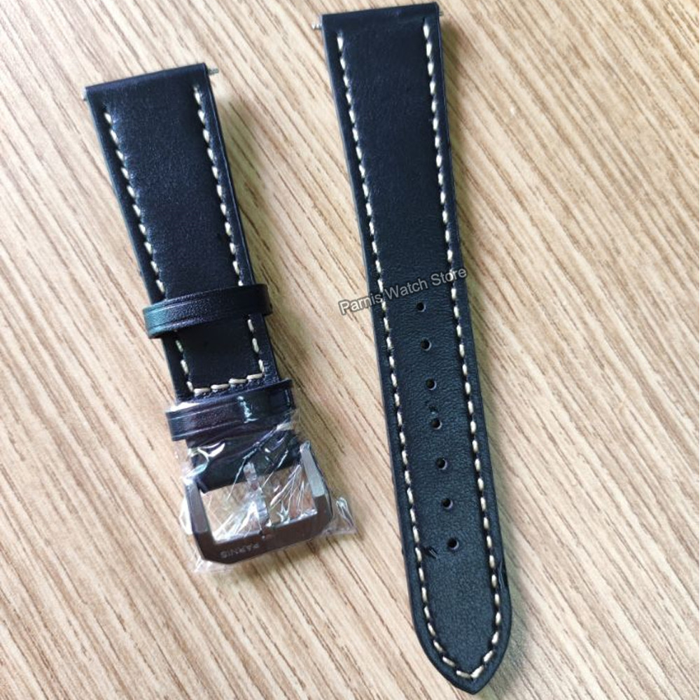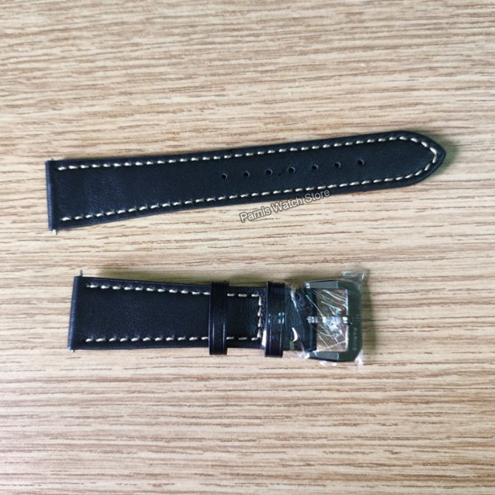 22mm Width Black Leather Watch Strap Men's Original Wristwatch Leather Band