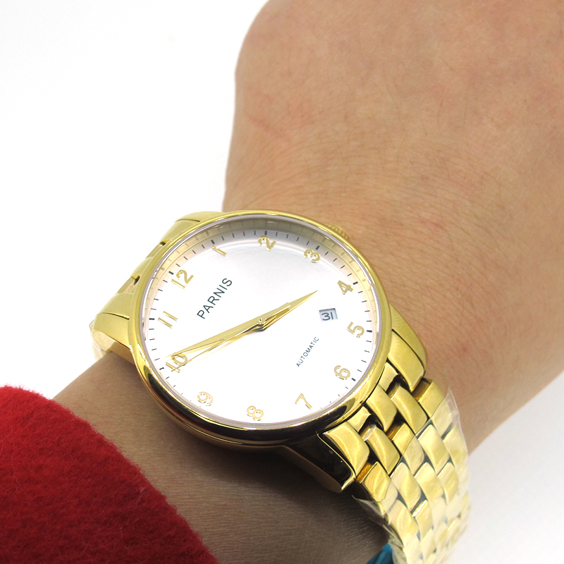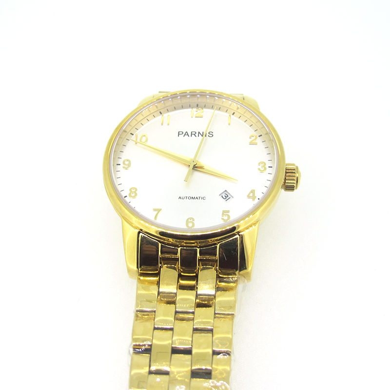 Package included: 1 Piece 38mm Parnis Sapphire Miyota Automatic Men's Mechanical Watch Gold Case Bracelet