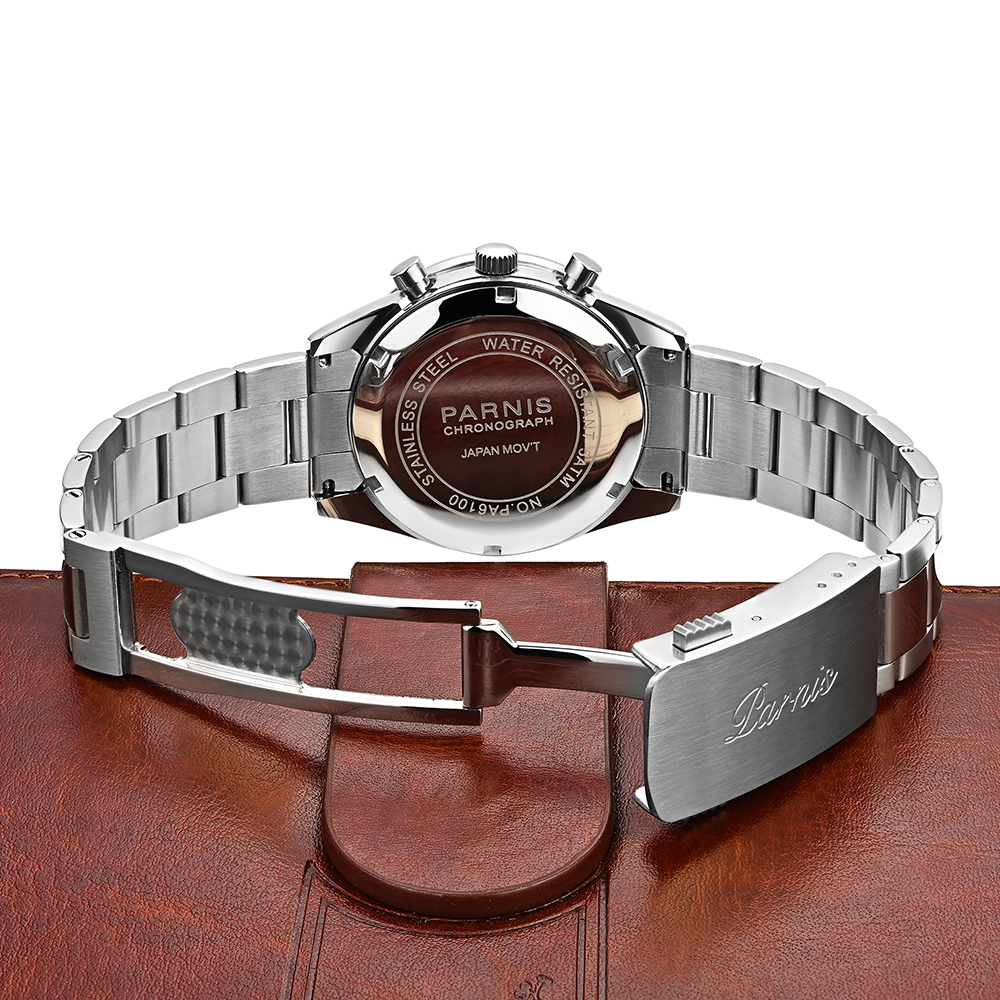 Package included: 1 Piece 40mm Parnis Date Indicator Quartz Chronograph Sport Boy Men's Watch Black Bezel