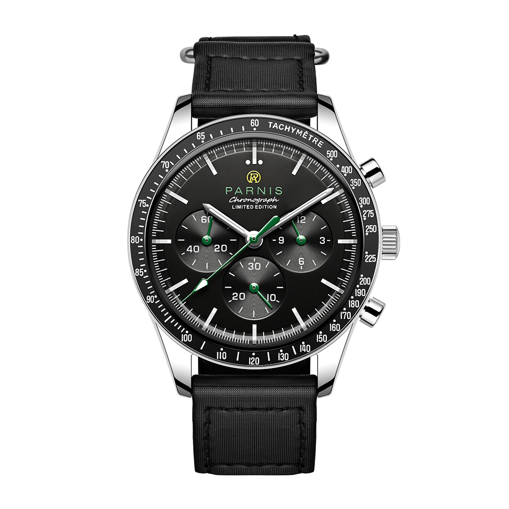 Package included: 1 Piece 40mm Parnis Men's Quartz Chronograph Watch Special Scratch Proof Mineral Crystal Satin Strap