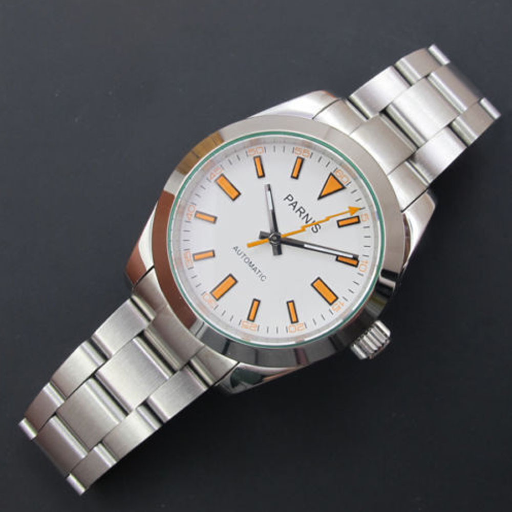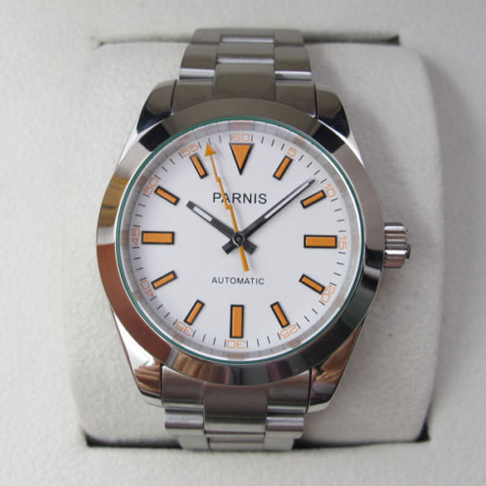 Package included: 1 Piece 40mm Parnis Sapphire Crystal Stainless Steel Strap Automatic Movement Men Watch