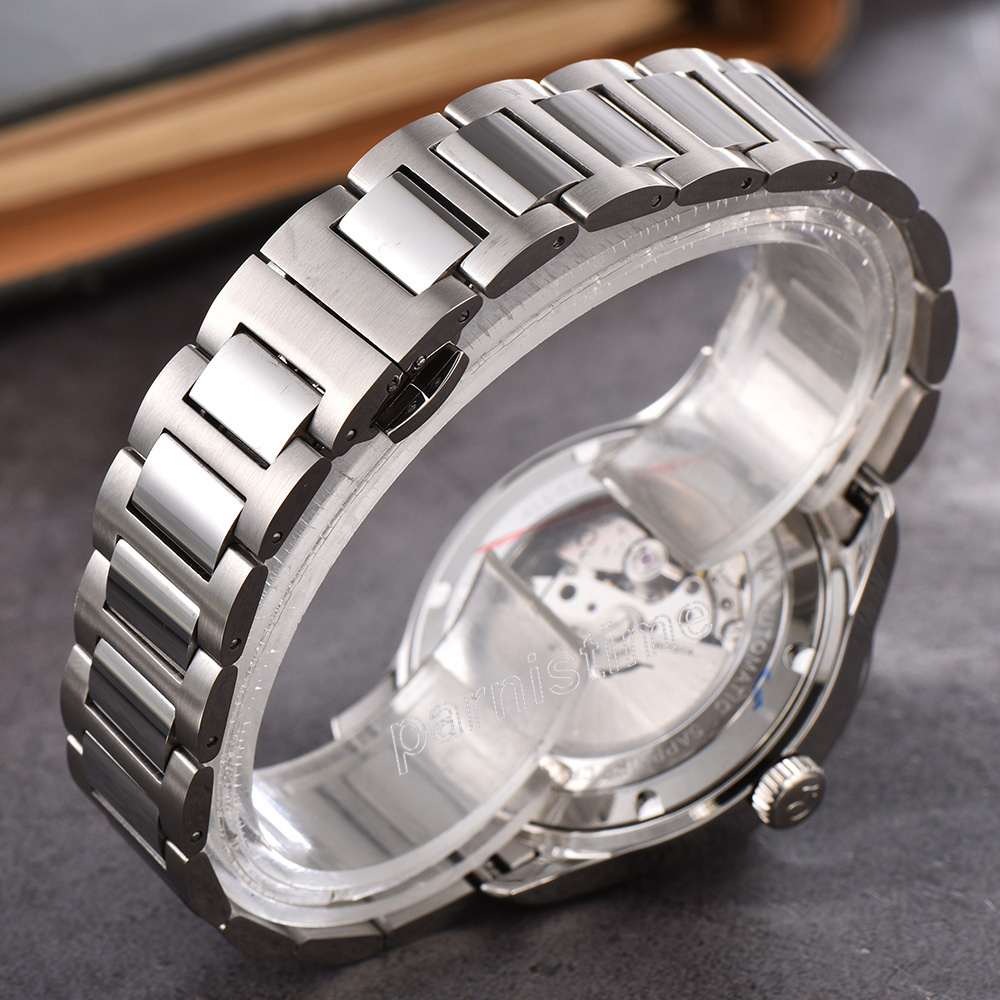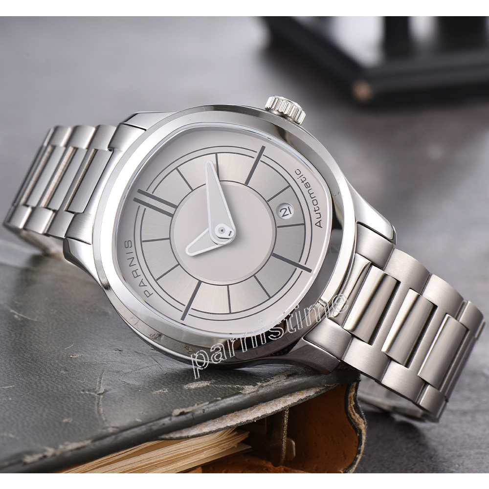 New Parnis 41mm Silver Case Mechanical Men Watch Black Leather Strap Automatic Self-Wind Men's Sports Watches