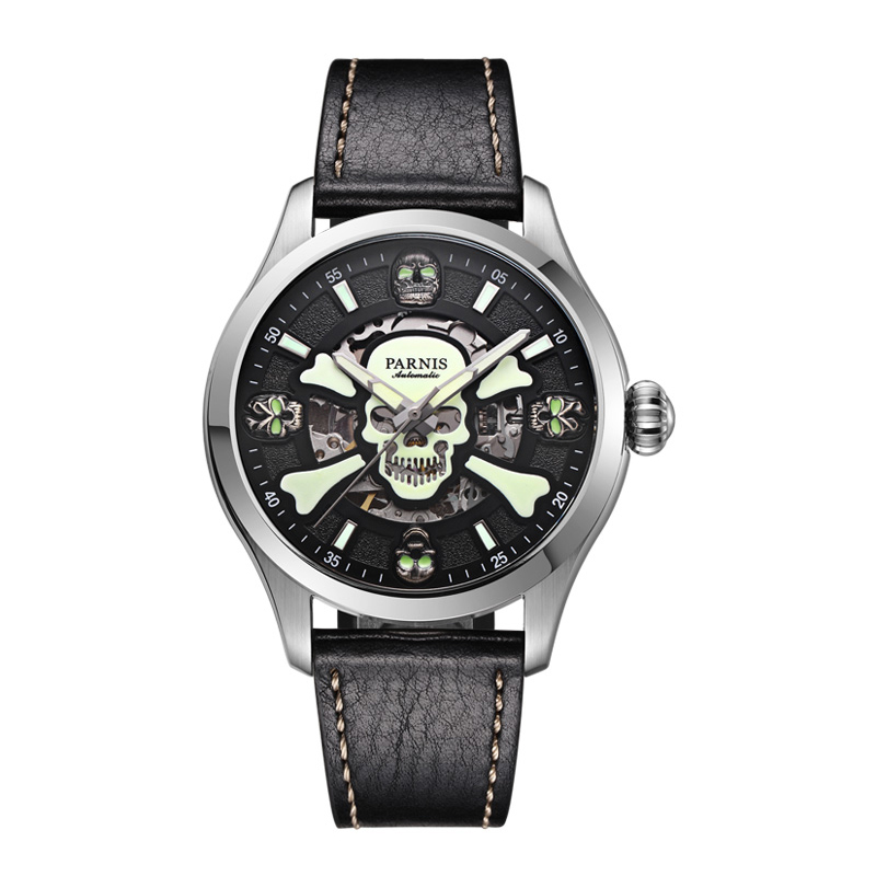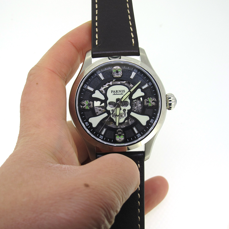 Package included: 1 Piece Parnis Automatic Movement Men's Casual Wristwatch Sapphire Crystal Skull Dial