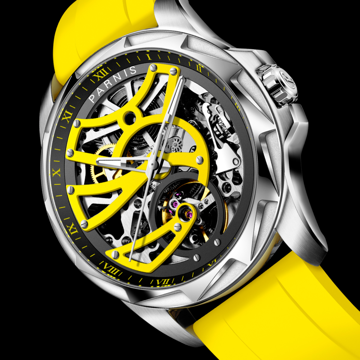 43mm Parnis New Hollow Out Dial Sapphire Crystal Seagull Automatic Mechanical Wristwatch