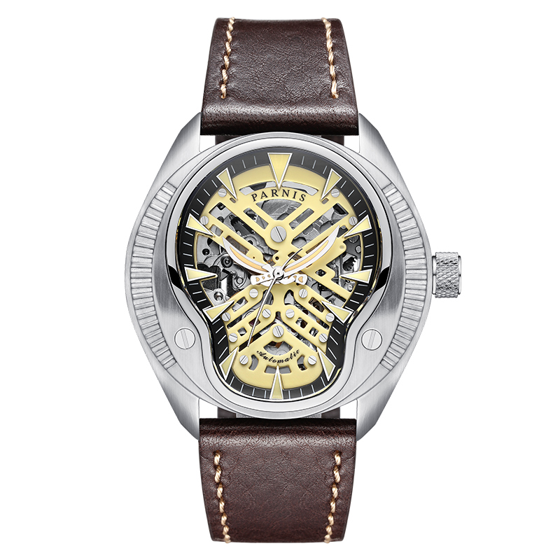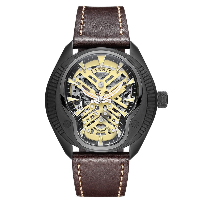 Package included: 1 Piece 43mm Parnis Luminous Skull Wristwatch Sapphire Crystal Automatic Movement Watch